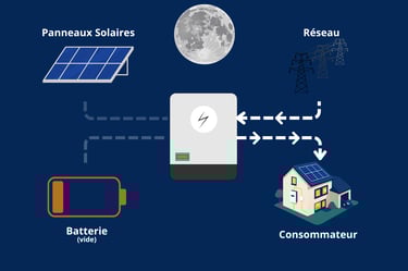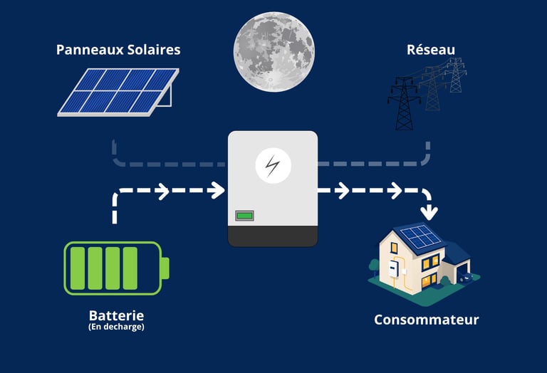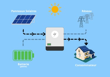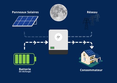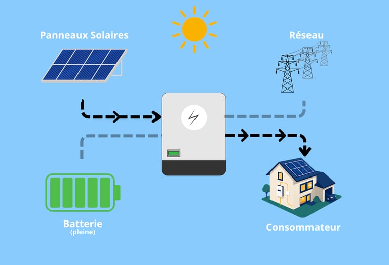 Vous utilisez directement votre énergie, vous la stockez intelligemment, et vous restez alimenté même en cas de coupure.