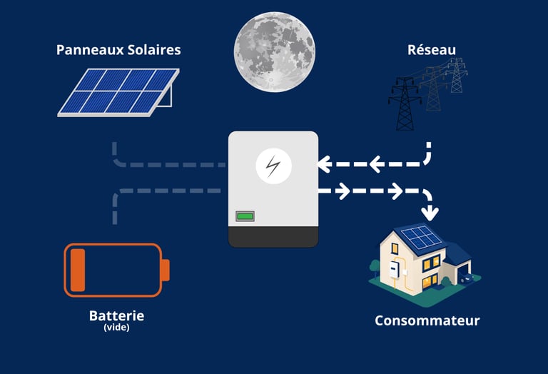 Même si la production solaire est insuffisante et que votre stockage est épuisé, vous restez alimenté.